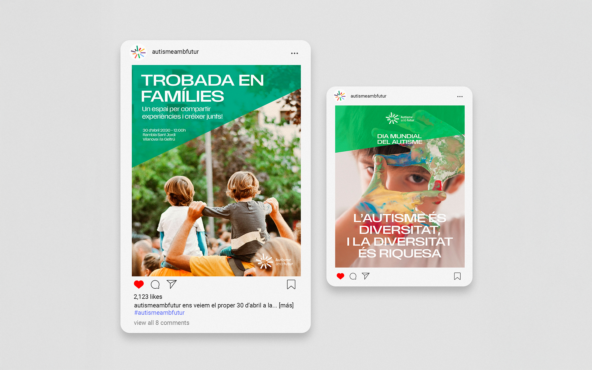 The identity conveys empathy, optimism, and belonging. It doesn’t aim to label or standardize, but to embrace difference and highlight the idea that everyone is part of the same whole. The name Autisme amb Futur looks ahead, and the visual language reinforces that vision: a future built together, where everyone matters.